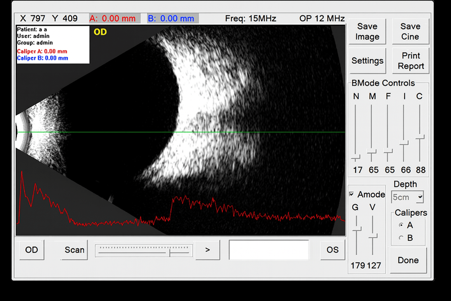 • With a pulse frequency of 12MHz/15MHz it has a 3 to 10 cm penetration depth and with its dual calipers you can easily measure the structure within the eye.