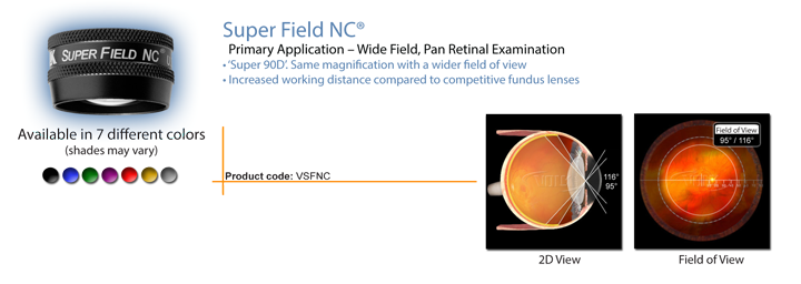 Primary Application: wide filed retinal scanning and small pupil exams (3-4mm)